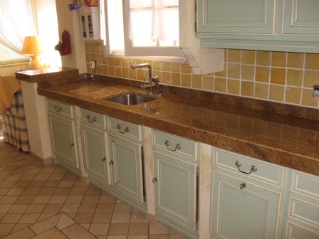 Les plans de travail en bois, en stratifié, en carrelage vieillissent toujours moins bien que les meubles. La solution pour ne pas changer toute votre cuisine est le remplacement du plan de travail par un granit ou une pierre. Vous avez alors l’impression d’avoir changé entièrement votre cuisine.